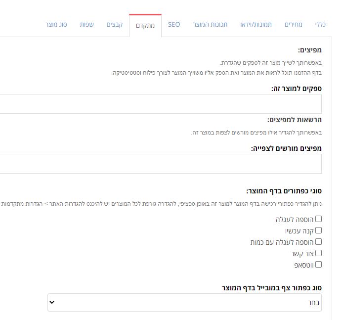 לצורך כך ניכנס אל עריכת המוצר > מתקדם