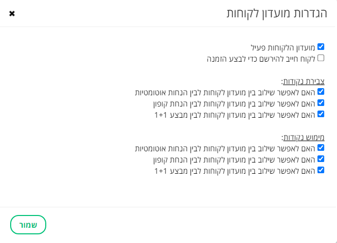 ממשק ניהול -> לקוחות -> מועדון לקוחות -> הגדרות: