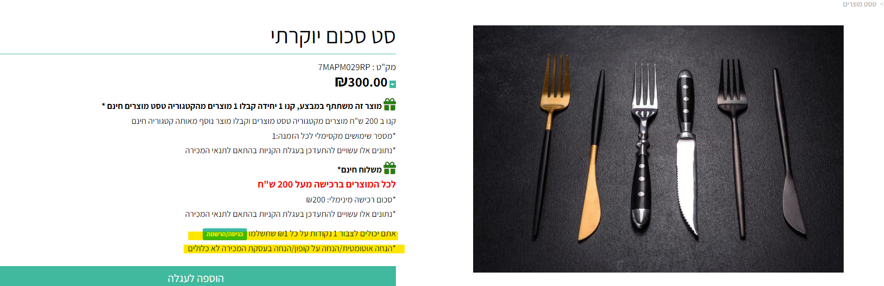 - ניתן לאפשר רכישה באתר רק בהרשמה/כניסה לאתר.