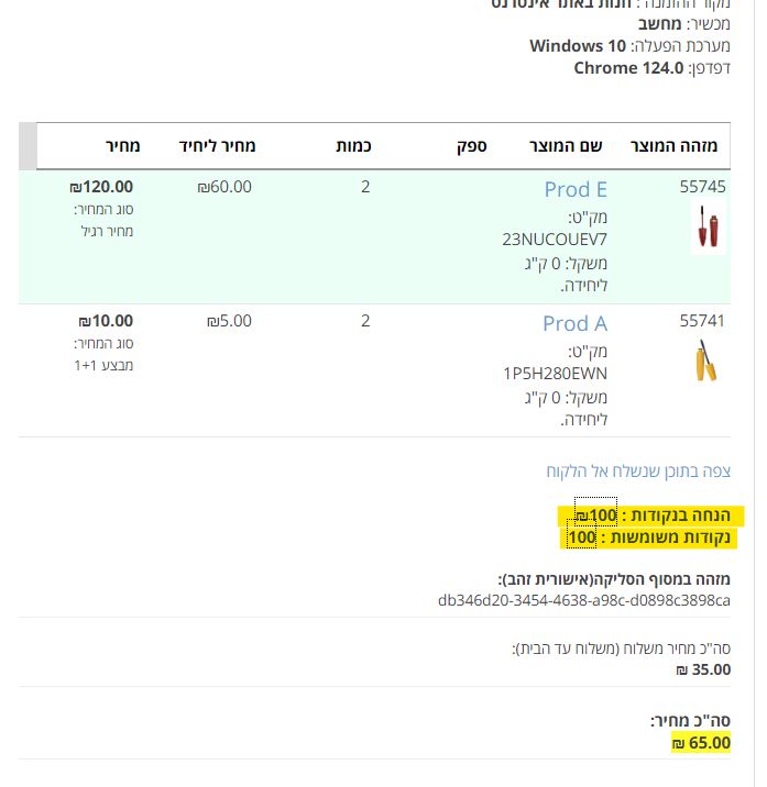בדף אישור ההזמנה הלקוח יראה כמה נקודות צבר ברכישה