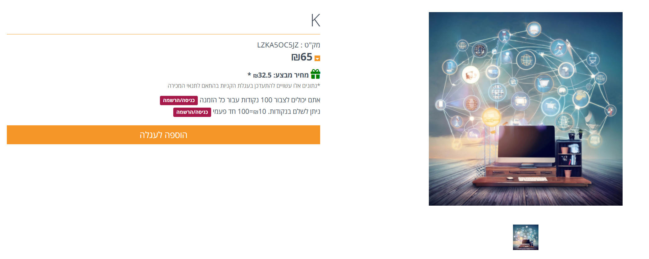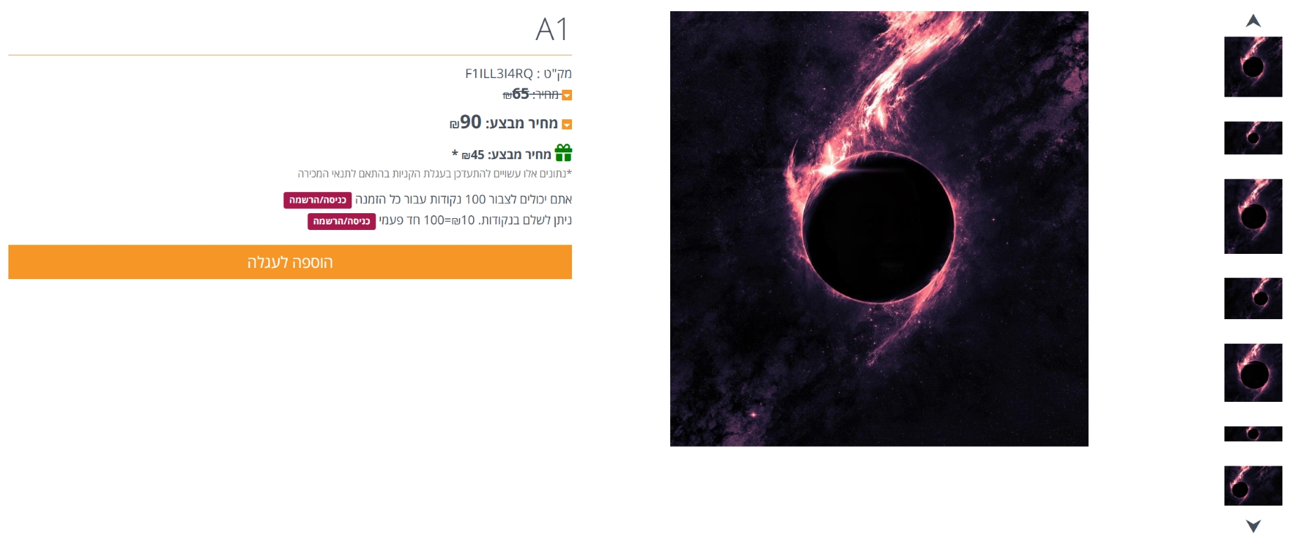 הגדרת מראה דף מוצר חדש מתבצעת דרך ממשק הניהול: