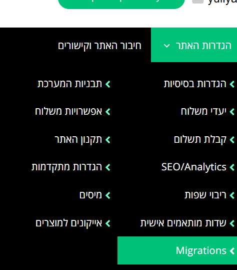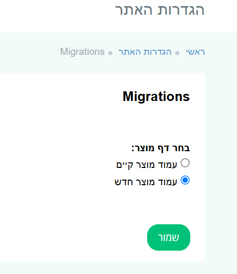 - לחצו על מילה Migrations -סמנו את המוצר דף חדש ושמרו