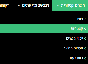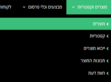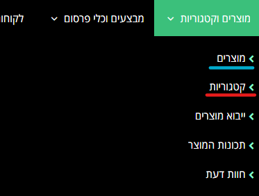 1. נכנסים לממשק ניהול -> מוצרים וקטוגוריות -> מוצרים או קטגוריות :