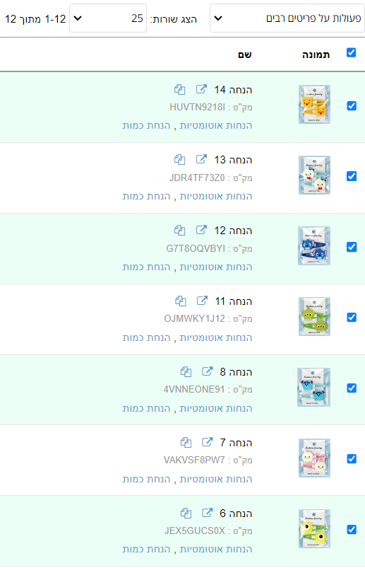 ** על הפעולה יש לחזור בכל עמוד מוצרים על מנת לעדכן מחירים לכל המוצרים הנדרשים או לכל החנות